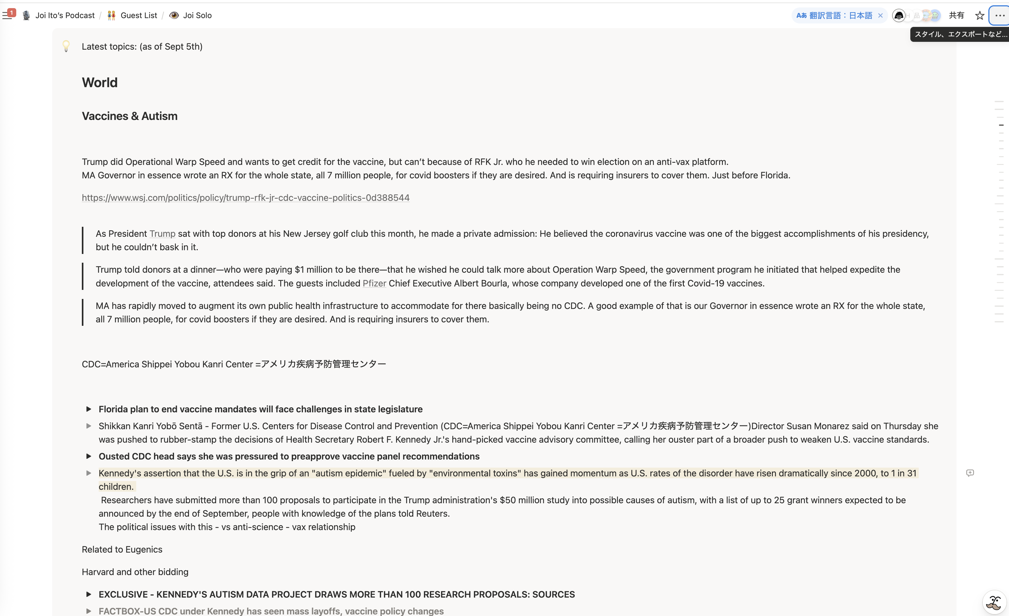 こんな感じで、私が気になったニュースを挙げておき、その後Joiさんが気になるニュースを足したり、メモを足したり。。。